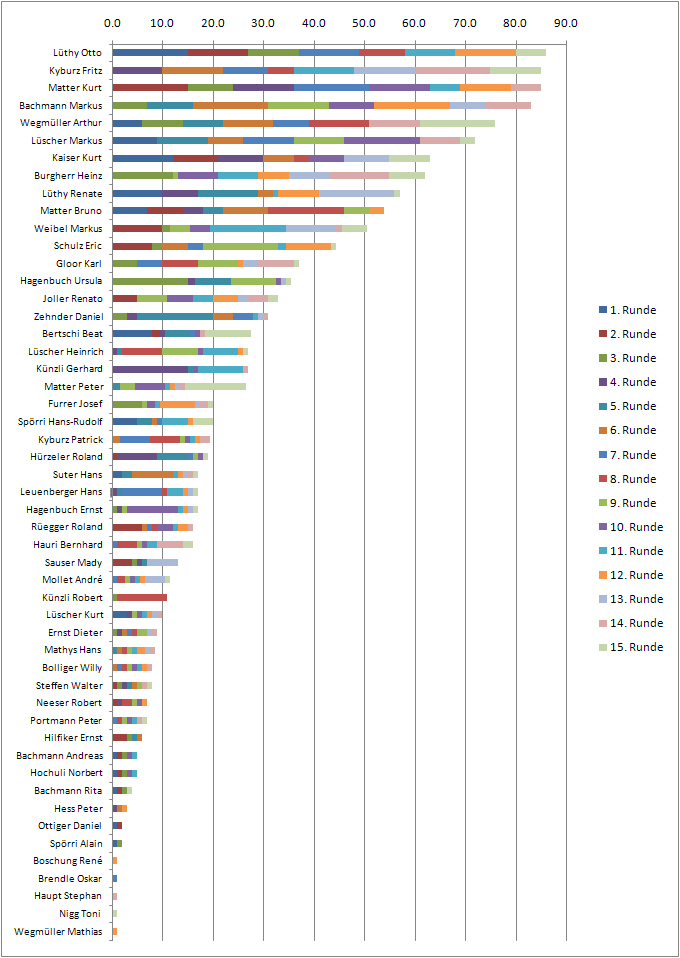 | 2. | Kyburz Fritz | SVS | 85.0 | 1.0 | 1.0 | 4.0 | 10.0 | 1.0 | 12.0 | 9.0 | 5.0 | 1.0 | 1.0 | 12.0 | 1.0 | 12.0 | 15.0 | 10.0 | 10.0 |