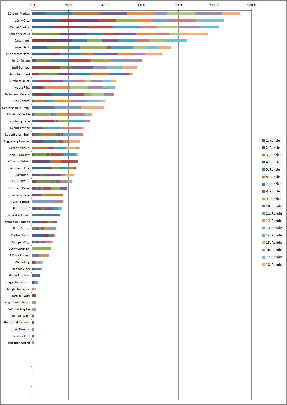 | 2. | Lüthy Otto | SVS | 105.0 | 15.0 | 9.0 | 3.0 | 12.0 | 2.0 | 1.0 | 5.0 | 10.0 | 12.0 | 5.0 | 7.0 | 10.0 | 15.0 | 1.0 | 3.0 | 15.0 | 4.0 | 24.0 | |